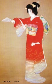 Un altro esempio dal periodo Heian fu l'utilizzo di strati diversi di kimono per ottenere eleganti effetti di colore (Kasane-no-irome). Ad esempio un kimono rosso poteva essere coperto con uno bianco sottile risultando nel colore di un fiore di ciliegio rosa pallido. Un costume formale di dame di corte Heian si chiamava Juni-hitoe, era un vestito a dodici strati, ognuno consistente in una diversa tonalità dello stesso colore. Gli strati sono stati indossati in ordine di sfumature sempre più scure, in modo tale che i diversi strati potevano essere visti alle aperture del collo e delle maniche.